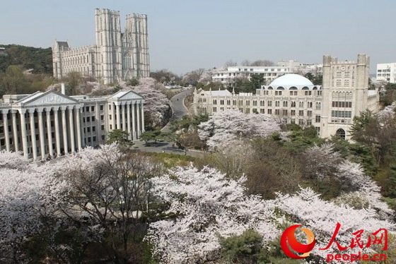 櫻花爛漫的慶熙大學。(圖片來源:網絡)