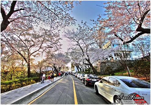 特征:環繞南山,長約7.5km的盤山路上有2000多棵櫻花樹。白天可以漫步櫻花大道,晚上乘坐纜車俯視遍布櫻花的南山和首爾夜景,也是一個不錯的選擇。