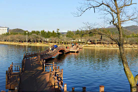 普門湖畔路從2014年11月起全部開通。此處能夠觀賞美麗的普門湖風光,適合散步或慢跑。普門湖畔路邊設有水邊瞭望臺、石頭小橋,更添趣味。這里到處都設有路燈和景觀照明燈,因而可以盡情觀賞普門湖的多樣風光。