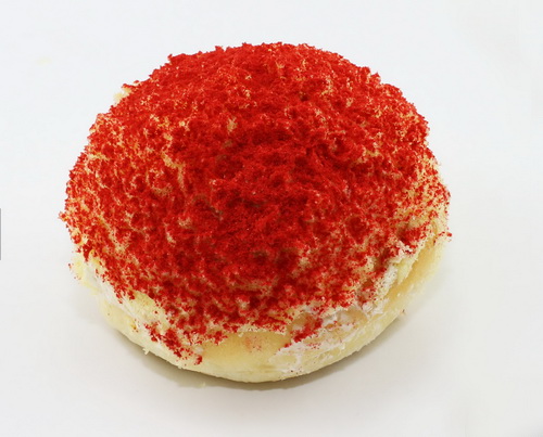 “題名”面包則是法國名品布里歐面包的創新改良,黃油餡料,柔軟濃郁,而面包上的紅色草莓粉末,口感酸甜,象征著吉利紅彩頭。