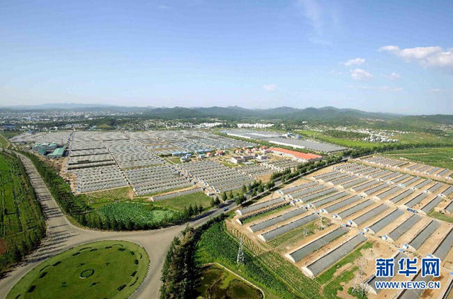 這張朝中社7月7日提供的照片顯示的是朝鮮平壤蔬菜科學研究所鳥瞰景象。金正恩參觀了電腦調度室、生物工程研究室和水稻大棚,具體了解了科研工作和蔬菜生產情況。金正恩就平壤蔬菜科學研究所今后的工作方向進行指示,并承諾為研究所建設科學家住宅。新華社/朝中社