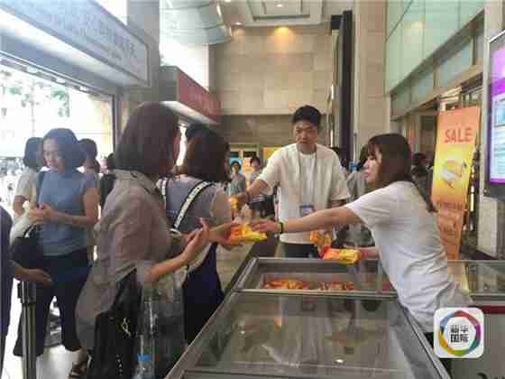 由于天氣炎熱,樂天百貨的工作人員還特別貼心地為來往的顧客和行人派發降暑的冷飲。