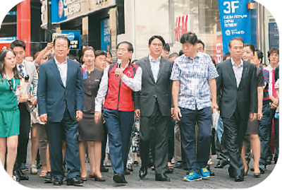 首爾市長(拿話筒者)親自帶隊推介明洞。