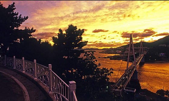 突山大橋位于全羅南道,是韓國最長的斜拉橋,其夜間奇特的亮燈方式吸引著世界各地的旅客。