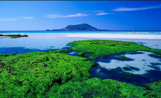 細花里位于濟州島,海鷗常常聚集在白色沙灘上,這里也是看日落的好地方。