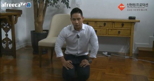 劉承俊在電視直播中向韓國民眾下跪道歉。(圖片來源:NEWS1)