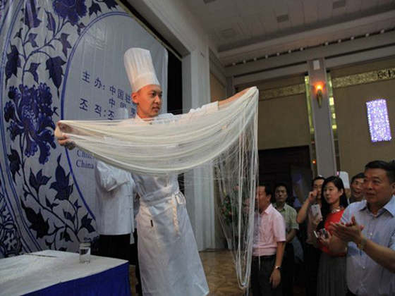 烹飪大師們還在現場表演了食材雕刻和抻面的精彩絕活,贏得在場來賓的熱烈掌聲。