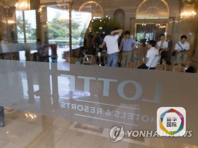 7月31日,記者們守在首爾樂天酒店,準備采訪當事人。(圖片來源:韓聯社)
