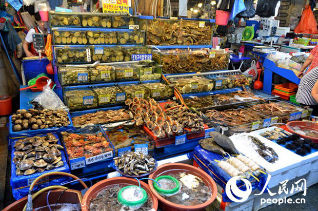 鷺粱津水產市場是韓國最大的水產品批發市場,已有80多年的經營歷史。市場內有830多家店鋪,出售貝類、螃蟹、海參等各種水產品,整個市場彌漫著大海的氣息。市場最大的亮點要數在凌晨舉行的競價活動了。據說,人們為了買到最新鮮的海產品,都會早早地來到市場,做好競價準備,競爭是非常激烈的!在市場購買完海鮮之后,直接在附近的飯店加工烹飪,即刻就可以品嘗到最新鮮的美味了。