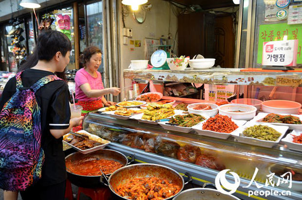換完銅錢就可以在加盟小店里選取菜肴。(拍攝:夏雪)