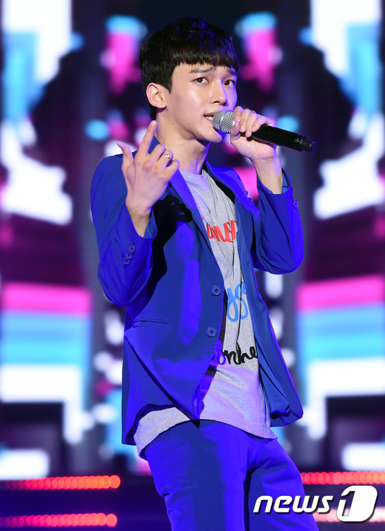 EXO穿藍紫色西裝霸氣開唱 張藝興呆萌KAI發型凌亂【組圖】