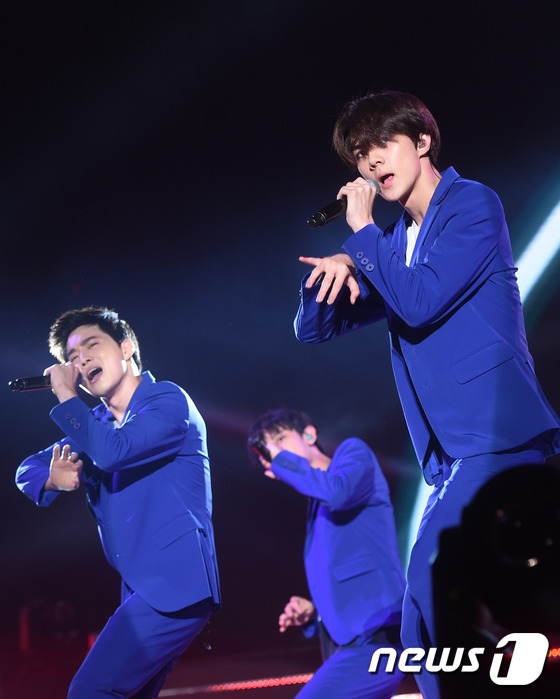 EXO穿藍紫色西裝霸氣開唱 張藝興呆萌KAI發型凌亂【組圖】 (2)