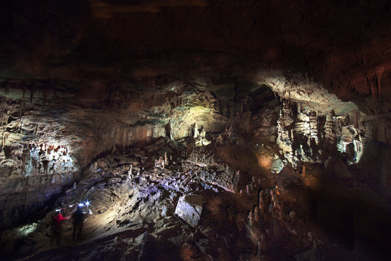 從入口進洞之后漆黑一片。觀光型洞窟接了電燈,但白龍洞窟里不通電,所以手電筒或是戴在頭上的照明燈必不可少。觀覽完鐘乳石、石筍之后,到達洞穴盡頭的大型曠地,所有游客關閉照明燈,只能聽見洞窟的水滴滴落的聲音。