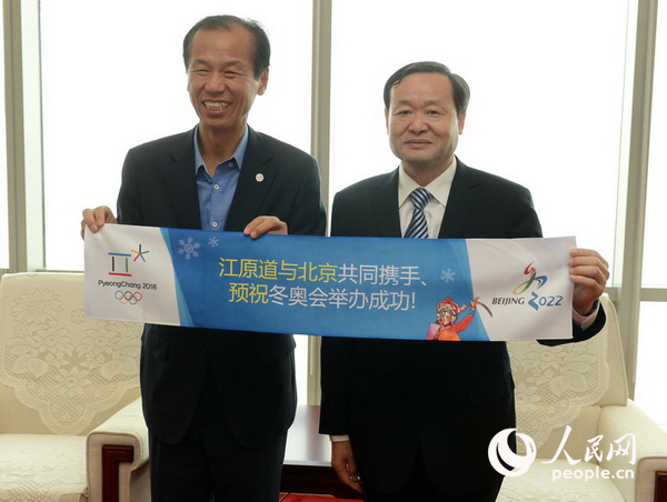 人民網北京9月17日電(趙宇)9月14日至17日,2018平昌冬奧會舉辦地韓國江原道道知事崔文洵率代表團訪問中國,向北京成功申辦2022年冬奧會表示祝賀,同時謀求與中國各界的實質性合作。