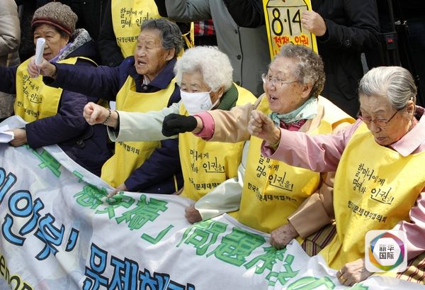 資料:二戰期間日本強征的韓國慰安婦抗議日本否認“慰安婦”歷史事實。