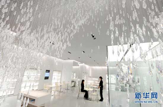 2010年6月10日,在水晶制造商施華洛世奇位于日本東京銀座商業區的旗艦店,工作人員查看咖啡館的內部裝飾。這座用各種水晶飾品裝飾的咖啡館位于這家旗艦店的二層。