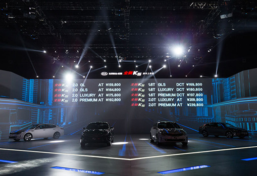 2015年10月13日,上海,東風悅達起亞全新K5于世博中心發布,作為K系列的旗艦車型,全新K5不僅延續了“Design Kia”的設計風格,更通過強勁的T動力和科技成果,詮釋“致臻·致美”的產品內涵,同時也彰顯出東風悅達起亞搶占中高級轎車市場的決心。新車推出普通版和運動版兩種外觀造型,并提供兩種不同配色的內飾,搭載3種排量發動機共計9款車型,售價區間15.98-23.98萬元。