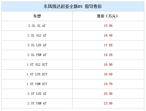 原標題:售15.98-23.98萬元 東風悅達起亞全新K5上市