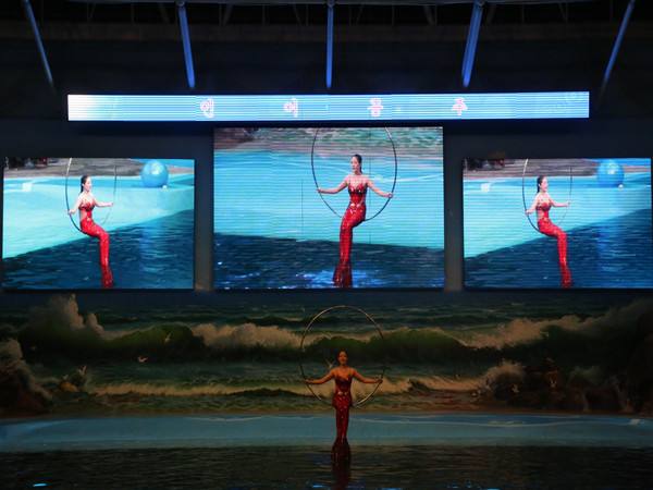 最后是互動節目,記者被請上舞臺,和海豚比賽轉呼啦圈。海豚們嫻熟的動作令第一次轉呼啦圈的記者慚愧不已,試了多次才終于成功,引來笑聲陣陣,全場掀起了一個小高潮。