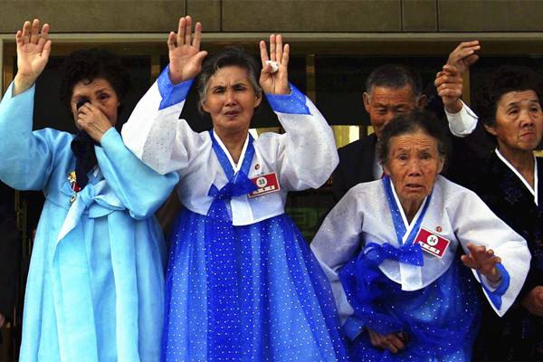 2007年5月11日,在朝鮮金剛山地區短暫團聚了三天后,一些朝鮮人與他們在韓國的親人依依不舍地告別。