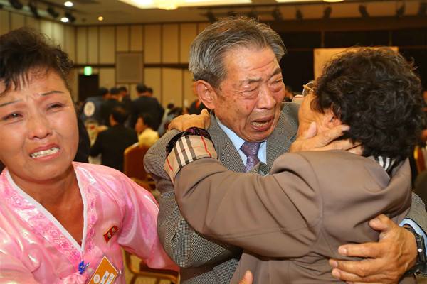 2015年10月20日-26日,韓國和朝鮮在朝鮮金剛山景區再次啟動韓朝離散家屬團聚活動。這是自從2000年韓朝舉行首腦會談以來第20次韓朝離散家屬會面的活動,相隔南北的雙方親人聚首共敘半個多世紀的離情。借此活動,新華國際客戶端回顧一下以往韓朝離散家屬久別重逢,相擁而泣,互訴衷腸的感人情景。