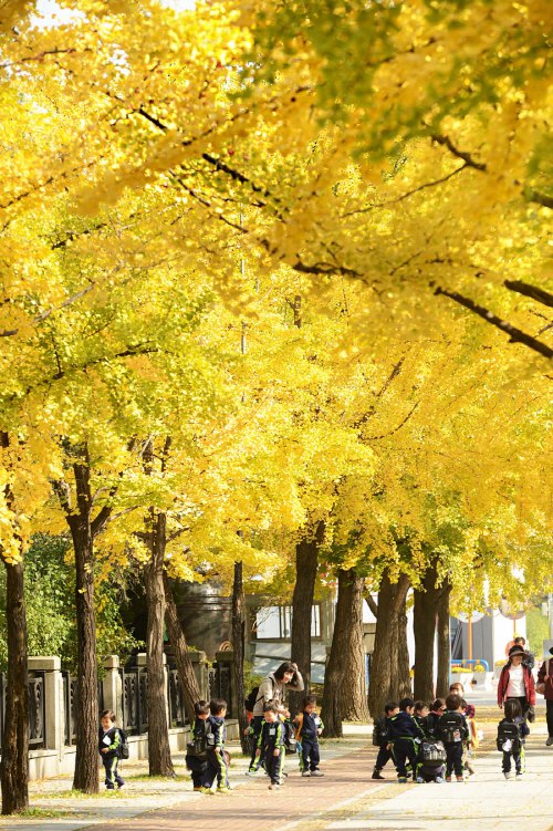 松坡區慰禮城路也是一條著名的楓葉路,從奧林匹克公園和平之門到南2門之間的2.7千米路段上,共種植了1320棵銀杏樹,風景尤其壯觀。風起的日子,樹上的銀杏葉雪花般飄落一地,風景獨好。這條路寬闊平坦,適合騎自行車和推育兒車的游客行走。特別是,很多郊游的游客會選擇在南2門附近的漢城百濟博物館草地上鋪上一塊席墊賞玩楓葉。乘坐地鐵8號線在夢村土城站下車,慰禮城路就在地鐵站口。