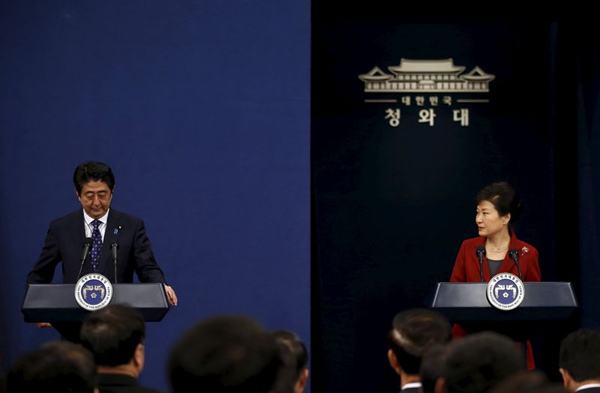 樸槿惠2日在首爾與日本首相安倍晉三會晤,雙方同意加快磋商,盡早解決“慰安婦”問題。這是樸槿惠和安倍各自就任國家領導人后首次正式雙邊會晤。有媒體稱安倍此次訪韓實現外交破冰,而在首爾,幾十個民間團體集會示威,抗議安倍沒有就日本二戰期間種種罪行道歉。