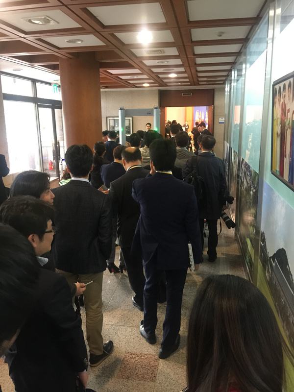 特別是克強總理當天晚些時候應約同安倍首相會見那場活動,為了搶到一個好的拍攝位置,一群記者放著休息室里舒服的座椅不坐,都擠在門口,就等著在第一時間沖進會見室。