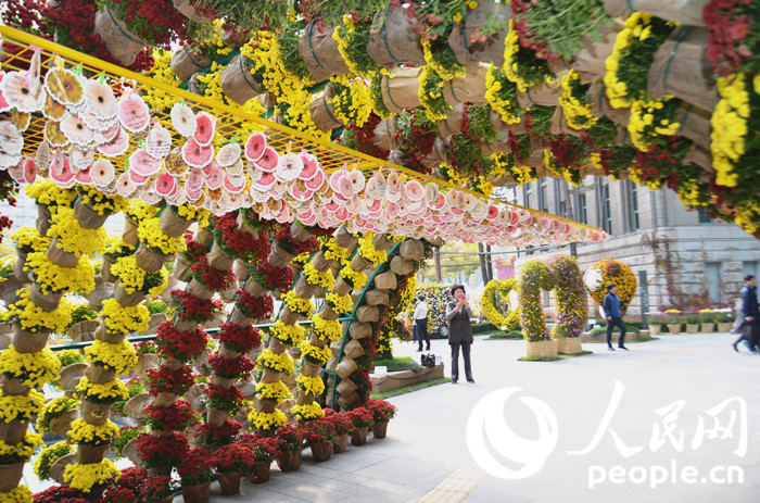 人民網首爾11月5日電(劉亞瓊)10月31日,2015首爾菊花展在首爾廣場附近盛大開幕。五彩斑斕的菊花搭配首爾秋季鋪滿落葉的街道,風景甚是別致。