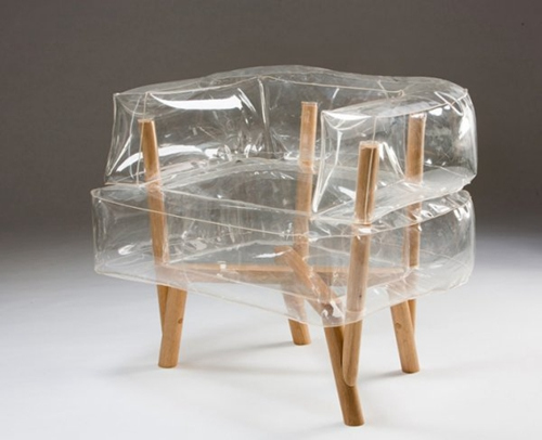 不久前,以色列設計師設計出一款創意椅子,僅以充氣墊和木棍為材料,其創作靈感則來自平板家具。該作品整體看來就是由透明的充氣結構包裹著木棍。椅子的座位部分是充氣的,支撐部分則是木棍。有體驗者表示,該椅子便宜、舒適、便于運輸,而且即裝即用。