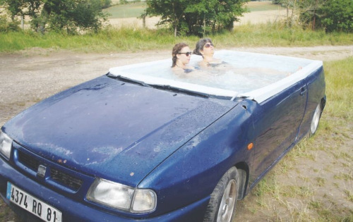 只要心思妙,廢物能變寶。法國藝術家別涅杰托?布法利諾就將自己藍色轎車成功改裝成全功能的按摩浴缸,賦予舊車新“生命”。他將舊車去除車頂、窗戶和擋風玻璃,并將內部所有不需要的裝置全部清除,利用木材、玻璃鋼、樹脂等將其改造成了全功能的按摩浴缸。