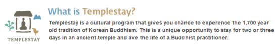 韓國一家網站上對“寺院生活營”作出解釋,稱這是在古廟生活兩到三天的獨特機會。