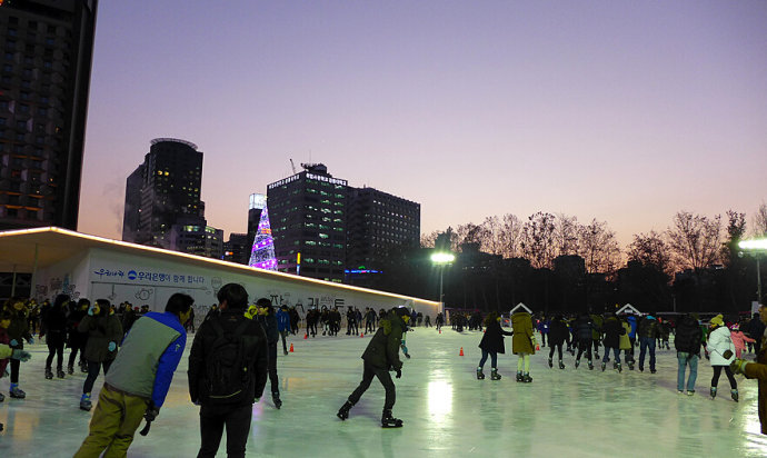 滑冰可謂是韓國的一項“國民運動”了,冬日里有很多韓國市民一到傍晚就到冰場滑冰鍛煉。