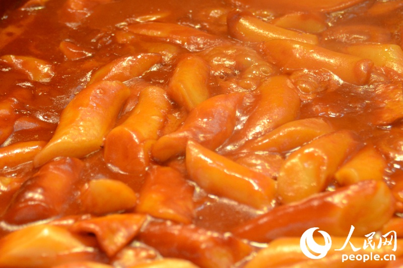 韓國冬季街頭小吃中,炒年糕是大家最為熟知的一種,在韓劇中的出鏡率也很高。炒年糕是用辣椒醬、糖、蔥翻炒而成的,醬汁濃郁,色澤誘人,讓人看著就不禁流口水。輕輕咬上一口,年糕甜辣入味卻絲毫不膩,十分有嚼勁。