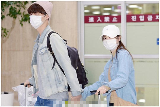 安宰賢和具惠善結束新婚旅行返回韓國現身機場。