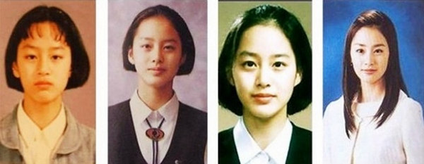 從左至右依次為金泰熙小學、初中、高中、大學畢業照