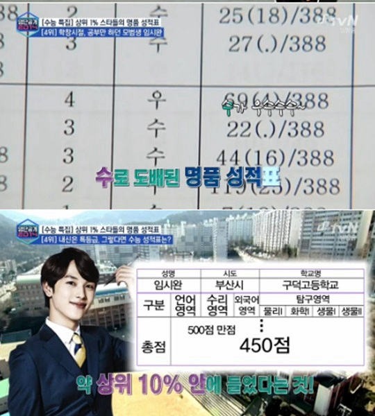 男子組合帝國之子的成員任時完高中時成績十分優異。任時完在進入釜山高中名校后,一直保持優秀的成績。