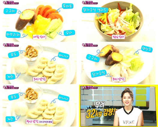樸寶藍自曝:“我減了32kg,成功減肥后連鞋碼都從之前的245變成了235!彼苍诠澞恐写蠓椒窒碜约旱臏p肥方法,就是少食多餐,而且健身教練列出的健康食譜沒有任何醬料和調味品。