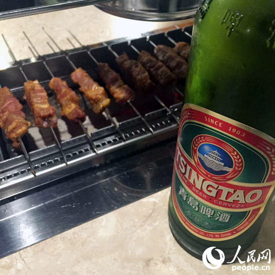 來自中國的“啤酒+羊肉串”組合逐漸被韓國民眾所接受。曾蓓蕾 攝