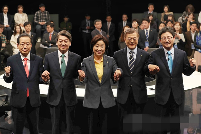 據韓聯社報道,據韓國民調機構Realmeter3日發布的最新大選民意調查結果,共同民主黨前黨首文在寅繼續擴大領先優勢,支持率高達42.4%。自由韓國黨候選人洪準杓與國民之黨候選人安哲秀同為18.6%,并列第二。另外,正黨劉承旼為4.9%,正義黨沈相奵為7.3%。(綜合新華網、環球網等)