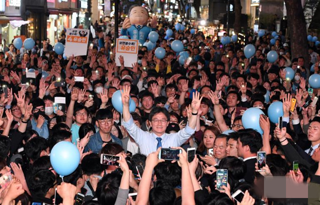 右翼在野黨“正黨”候選人劉承旼8日首先在大田市展開拉票活動,而后返回首爾,在街頭繼續進行宣傳活動,呼吁年輕選民的支持。