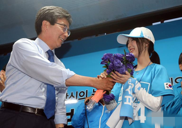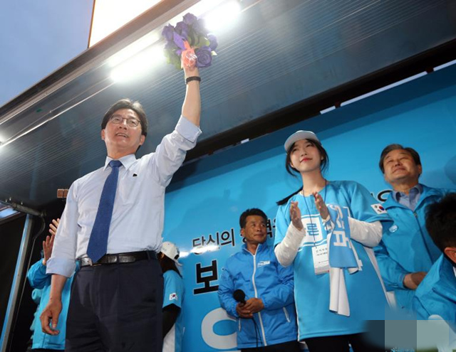 劉承旼之女劉垣(音)現身支持父親,并為父親拉票。