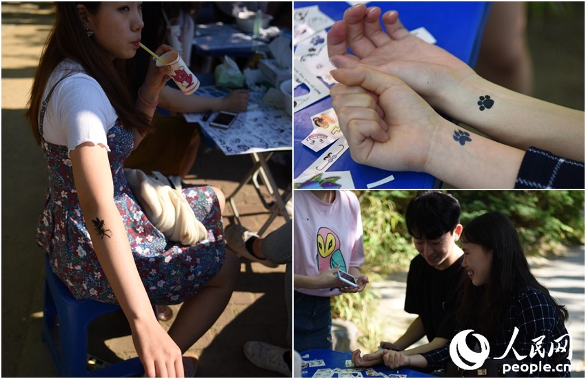 在弘大校園里還可以看見一些十分特別的體驗活動,比如深受文藝青年喜愛的一次性紋身。