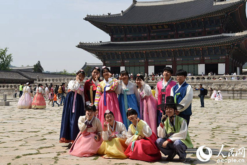 游客們身著風格多樣、顏色各異的韓服,徜徉在古色古香的古宮庭院,仿佛穿越了時光,為古老而嚴肅的宮廷帶來了無限靈動和生機。