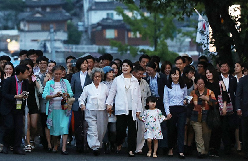 當晚8時,韓國總統文在寅的夫人金正淑與市民一同參與“青瓦臺前街夜間散步”的活動,紀念這條道路時隔半個世紀重新對外開放。