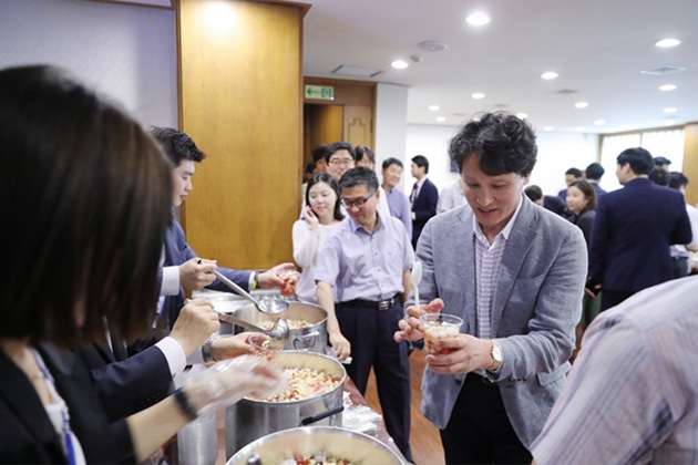 酷暑來臨,金正淑為招待訪問青瓦臺的記者特意準備了水果甜茶。水果甜茶是將西瓜、蘋果、梨等水果切塊后放入蘇打水、五味子茶里浸泡過夜制成的,是韓國人非常喜愛的夏日甜品。為了便于保存,一般甜茶里會加一些冰塊。但金正淑擔心添加冰塊會稀釋味道,特意先將水果冷藏,等記者快到時才開始制作。