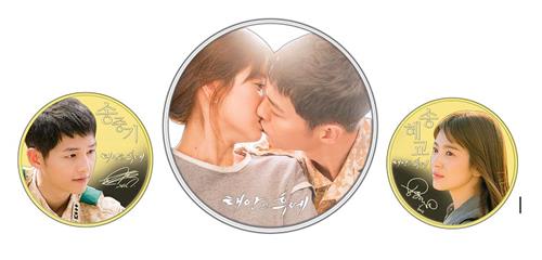 宋仲基和宋慧喬近日公布婚訊,造幣公社以此為契機,推出兩人在熱播劇中吻戲場面的銀章和銅章。套裝由一枚銀章和兩枚銅章組成,銀章上印有宋仲基和宋慧喬在電視劇中的經典吻戲場面,一套價格49萬韓元(約合人民幣2938元)。