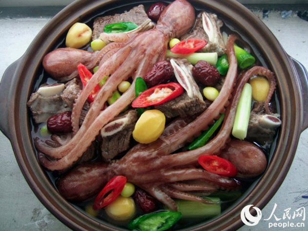 韓國有句俗話是“只要有一條活章魚,筋疲力盡的牛都會瞬間精神抖擻起來”。由此可見,章魚在韓國被視為恢復體力的上好補品。因此,排骨章魚湯、烤章魚、涼拌章魚等章魚料理自然就成為了韓國人喜歡的夏季養生美食。
