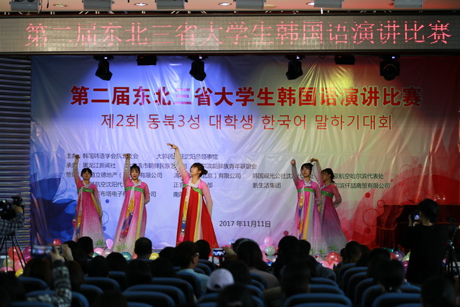 11月11日上午,第二屆東北三省大學生韓國語演講大賽在哈爾濱朝鮮民族藝術館落下帷幕。韓國駐中國沈陽領事館文化部領事李慧卿、黑龍江省政府外事辦處長王新國、黑龍江新聞社副社長樸白林、哈爾濱市朝鮮民族藝術館館長樸春姬、韓文學會部長金一光、哈爾濱韓國(商)會會長金南日、成道立德地產(大慶)有限公司代表金玄洪等出席了本次大賽。