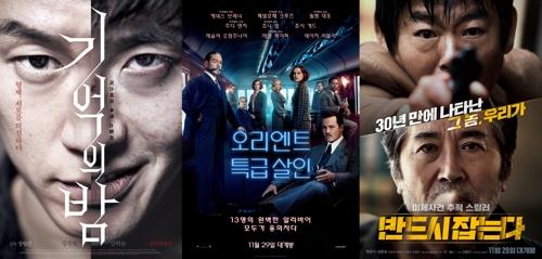 《記憶之夜》(左起)、《東方快車謀殺案》和《一定要抓住》海報